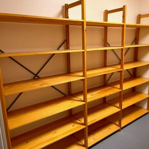 BROR BOIJE. Hyllsystem, "Flexi", björkfanér, för Horreds Möbler. 2- delad, 1 vitrindel med belysning.