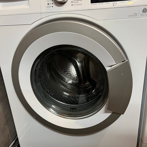 Själva handtaget är borta, pga att dottern använde det som avstamp för att ta sig upp på maskinen.