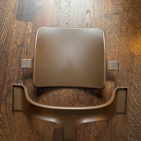 Säljer tillbehör till Stokke Tripp Trapp barnstol, bestående av bricka och Baby Set i grå färg. Tillbehören är avsedda att användas tillsammans med Stokke Tripp Trapp barnstol.