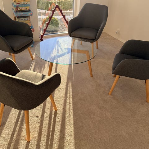Grå fåtölj och fotpall från Ikea i serien HAVBERG. Sparsamt använd = inga fläckar! Nypris 4990kr.
