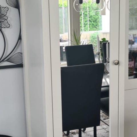 Selling a freestanding mirror cabinet with built-in storage. This piece combines a full-length mirror with practical interior storage, ideal for jewellery, accessories, keys, and small items.