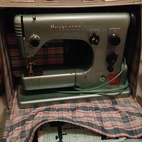 Väldigt enkel symaskin som skulle vara okrångling men inte är det - satans förstfödde enligt min dotter som älskar att sy. Bara 400 kr. Billigt för satans förstfödde tycker jag. Finns att hämta i uppsala -helst av någon som är en symaskin-whisperer