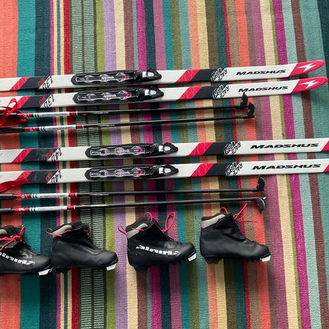 längdskidor, pjäxor, skridskor och ridutrustning
