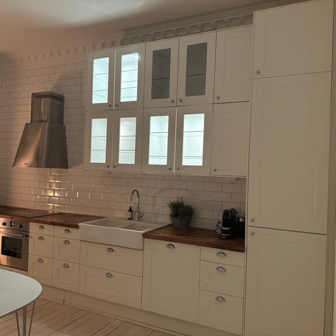 IKEA-kök faktum med vita högblanka luckor