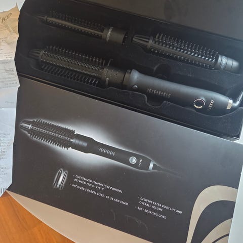 Locktång Multi med flera tillbehör för att skapa olika lockar och frisyrer. Setet innehåller en locktång med utbytbara lockverktyg i olika former och storlekar samt en värmetålig handske. Passar för styling av hår med olika texturer och längder.