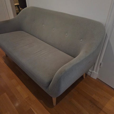 Två-sittssoffa. Soffserie Vimle från Ikea. Soffrans klädsel är sliten på vissa ställen, men det går att byta ut den mot en ny.