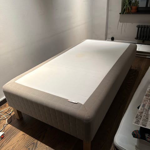 Säljer vår säng från IKEA av modell Snarum, 105 cm. Perfekt för barnrummet eller som gästsäng, Sängen kommer med 4 höga ben av metall som enkelt skruvas på. 300 kr - prutat och klart.