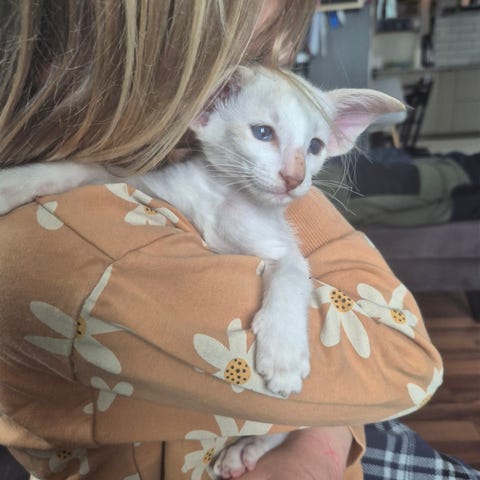 Är mycket vetgirig men tänk på han vill huggas är innekatt