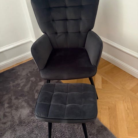 Ljusrosa fåtölj i sammet med svarta ben i metall från Ellos. Mycket fint skick!
