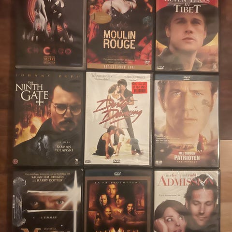 Samling av 18 DVD-filmer/ blueray med olika titlar. Innehåller filmer som Natural Born Killers, Scarface, Hannibal, the Deerhunter, Järnkorset, das boot, Upproret, Eternal, Ondskan, the Blair Witch projekt, Beaufort, The OC och flera andra. Formatet är DVD, och filmerna är i standardstorlek för DVD-skivor.