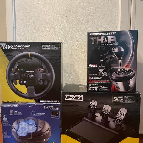 Thrustmaster T300 RS ratt och pedalset med växelspak. Utrustad med ratt, tre pedaler och en manuell växelspak, samt ställingen "Wheel Stand Pro". Anslutningsbar till PlayStation, PC, och XBOX.