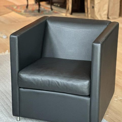 Exklusiva Lammhults fåtölj av modellen Corso i svart läder. Den är från 2023 och i väldigt fint skick.