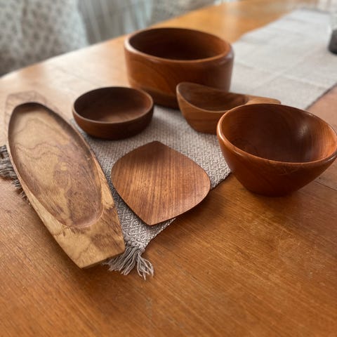 Stora vaser och en liten blomlåda/piedistal i teak.