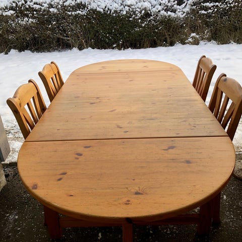 Endast seriösa köpare. Bordet och stolarna hämtas enligt överenskommelse. Swishbetalning.