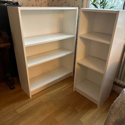 2 st 80cm x 202cm vita Billy bokyllor, 200 kr/st