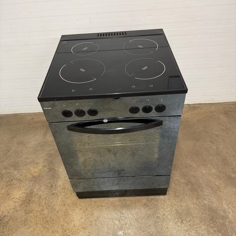 Grundig svart induktionsspis. Endast 2 plattor och ugnen fungerar. De 2 vänstra plattorna fungerar inte, de visar samma symbol som när man inte har någon gryta på plattan