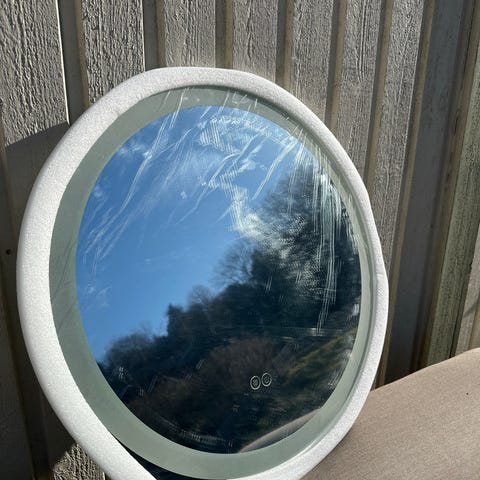 Har använts som sminkspegel på rum så det sitter en strömbrytare på.