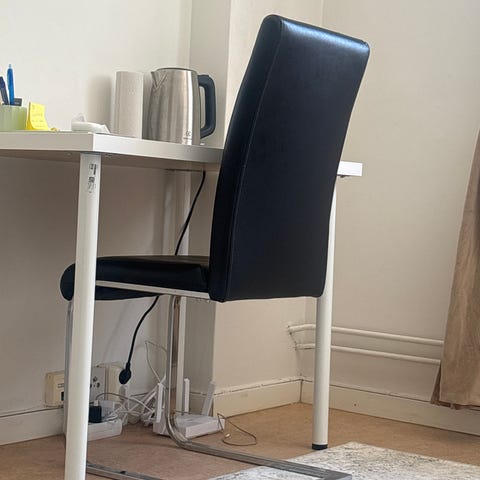 OBS. katt finns i hemmet, men det är inget som märks på varken skrivbordet eller kontorsstolen.