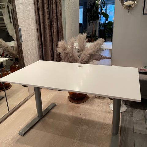 IKEA Skarsta skrivbord med höj- och sänkbar funktion. Max höjd 120 cm. Min höjd 70 cm. Sparsamt använt i ett år, fortfarande i ett mycket bra skick. Säljes pga flytt. Manualen följer med.