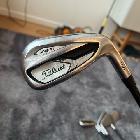 Titleist MB FORGED 714 Järnset golfklubbor med stålskaft och grepp i svart och vitt. Setet innehåller flera järnklubbor med olika loft för varierade slag. Klubborna är designade för golfspelare och har en klassisk utformning.