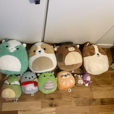 De kommer i olika storlekar och färger och varje Squishmallows har sitt eget namn och sin egen unika personlighet.