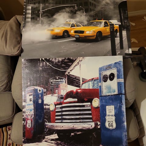 Tavlor med motiv från New York och Paris.