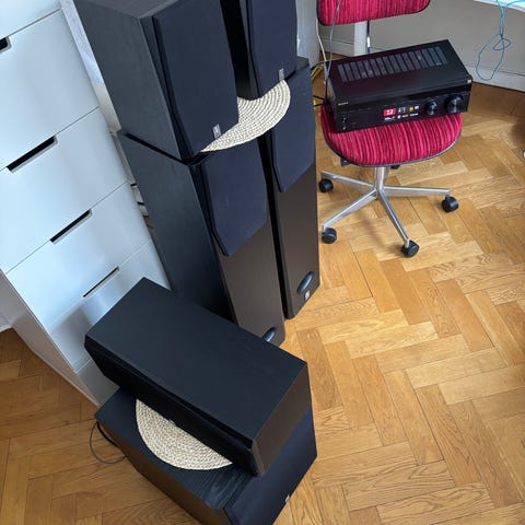 Komplett stereoanläggning av märket Kenwood inkl stereomöbel. Högtalare av märket American Acoustics, för riktiga audiofiler, följer även med.