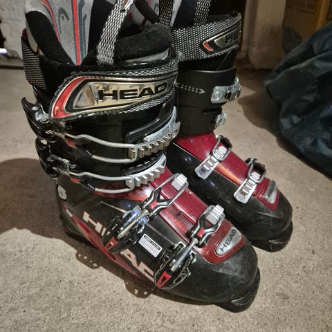 Innermått 19,5 cm. I använt och väl fungerande skick. Något repiga, se bilder. Innerfoder i fint intakt skick. Svarta/röda i färgen.