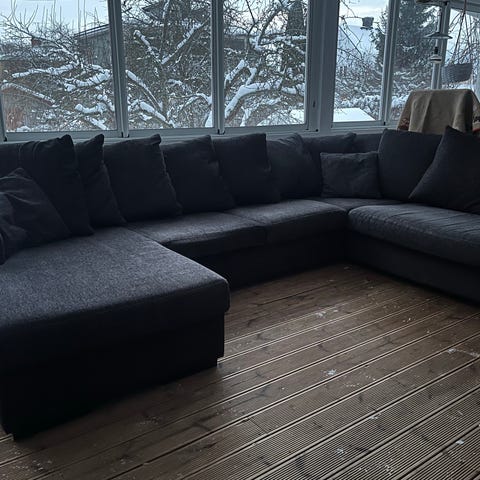 Hej! Säljer en rymlig och bekväm U-soffa i grått tyg, i mycket fint skick.
