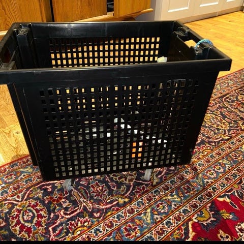 Har hjul, rör för klubbor samt rep att dra den med 🙂