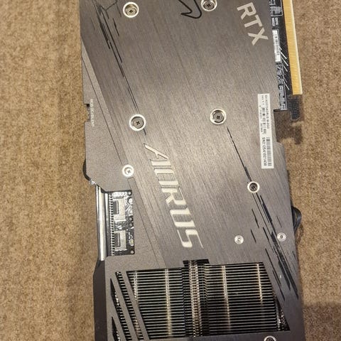 Pedant omhändertaget Gigabyte Aorus master 3070. Kortet har 3 fläktar och en påkostat kylare vilket gör att kortet går tyst och svalt under spelande. Kartong och alla tillbehör finns kvar och kortet skickas väl emballerat.