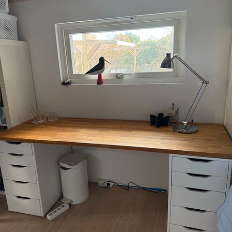Säljer egengjort skrivbord, två hurtsar från IKEA, hurtsarna är ”ALEX”.