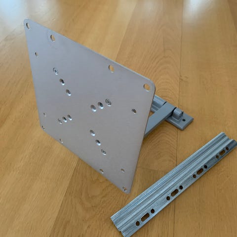 Säljer ett äldre väggfäste. Tidigare suttit en 42 tums plasma-tv på. Mått: Cirka 71,5 centimeter långt och 20,5 centimeter brett. Se bilder för befintligt skick.