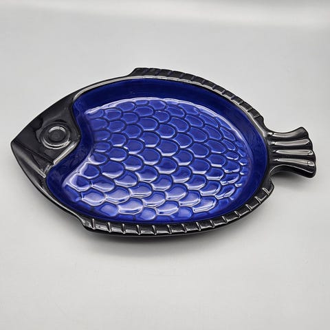 Utseende: Fatet har geometriska motiv och en enfärgad dekor, i detta fall med en grå glasyr.