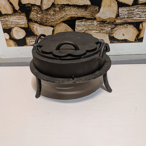 Trebening i fint skick att ställa gryta eller kaffekokare på, över öppen eld.