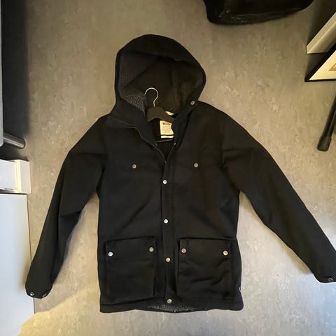 Klassiska Grönlandsjackan i slitstark G-1000, den här modellen med värmande dunfyllning och läderdetaljer. Storlek M, färg Dark Navy.