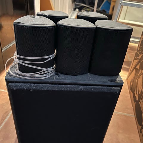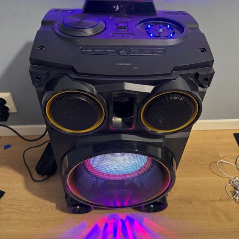 Kostar 180kr! Andersson högtalarsystem med subwoofer i svart färg. Systemet består av två satellithögtalare och en subwoofer, vilket ger möjlighet till förbättrad ljudupplevelse vid användning med kompatibla enheter.