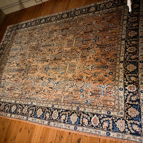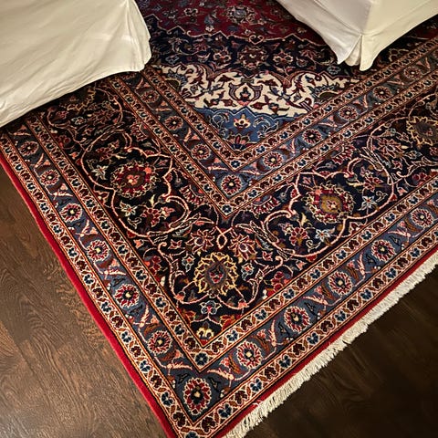 Mattan är i gott begagnat skick – levande färger, jämn lugg, inga stora fläckar eller skador. Lite naturligt slitage på fransarna i hörnen (vanligt efter några års användning), men inget som påverkar utseendet eller funktionen nämnvärt. Nypris för liknande kvalitet ligger ofta 40–60 000 kr. Nu säljer jag för 10.500kr. Hämtas i Gävle. Kan ses och undersökas ordentligt – baksida, knutar och etikett finns med på bilderna!