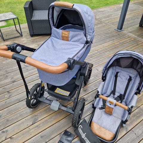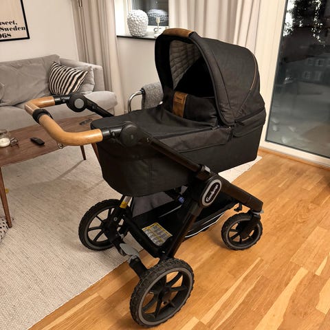 Stabil och bra barnvagn. Inköpt 2022 i fint skick. Endast några märken från ihopfällning samt ett litet skav på bygeln. Se bilder.