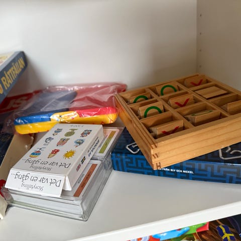 Reseset i trä (bestående av schack, dam, domino och mikado)