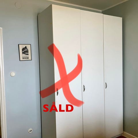 Väl använd, några skruvhål men fungerande och inge som märks utåt. Den ena har bakstycke den andra inte. Alla delar medföljer som väggfästen osv. Obs bara stommen, ingen inredning.