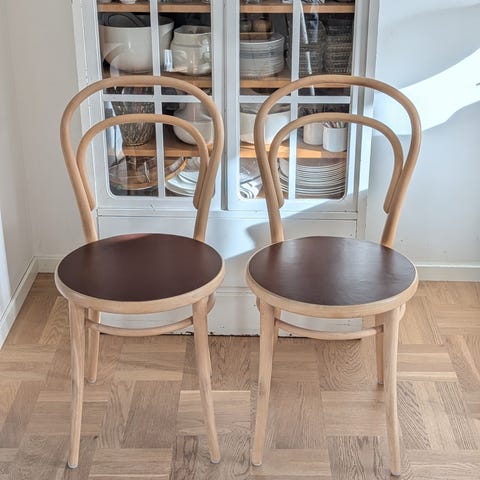 Ljusrosa Ton/Thonet stol no 14 inköpt på Tambur