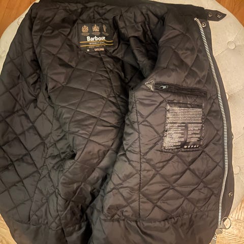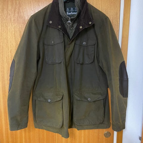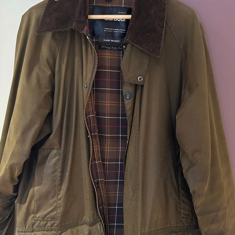 En välanvänd och älskad oljerock från Barbour, modell Classic beaufort. Storlek C40/102cm. Behövs lagas och vaxas men har mycket kvar att ge.