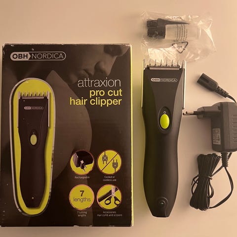 Philips hårtrimmer med flera kammar för olika längdinställningar. Inkluderar flera kammar i olika storlekar för anpassning av klippning. Designad för att användas vid hårklippning och trimning. Även näs och örontrimmer.