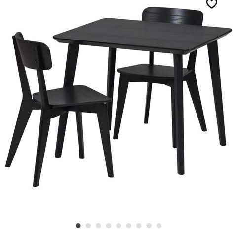 Säljer ett svart matbord (IKEA Bjursta) med två matchande stolar i begagnat och använt skick. Bordet är köpt begagnat på Marketplace och använt i studentlägenhet. Passar utmärkt för mindre ytor.