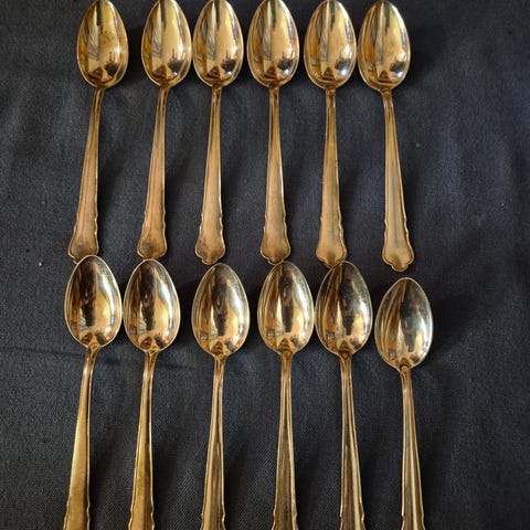 12 st latteskedar/drinkskedar i hamrat smide från Indiskas serie "Rustik" (2005)