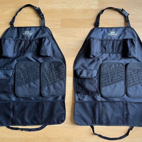 2 st helt nya sparkskydd som skyddar bilsätena mot märken och smuts. Massor av bra fack för förvaring av prylar under resan.