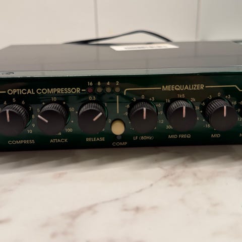 Säljer en Urei LA-4 i bra skick. Klassisk optisk kompressor/limiter med diskret transistorbaserad signalväg. Fullt fungerande, men lite sliten på kosmetiskt.