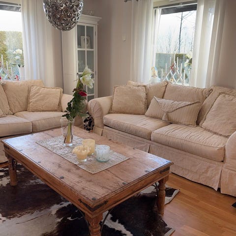Mycket fin beige tresits soffa