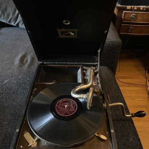 Vevgrammofon med lite skivor. Pris 800kr